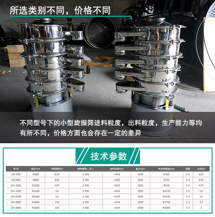 目前來看市場上的小型旋振篩廠家較多,在設備設計、制造過程中會有所不同,且所選用的原材料也會不同,因此價格方面肯定存在差異。