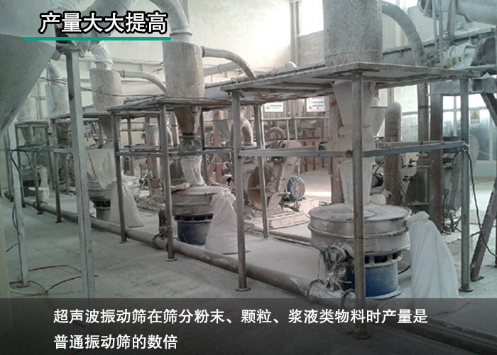 超聲波振動篩由于加裝了超聲波篩分系統的緣故,篩分速度提高,使得超聲波振動篩在篩分粉末、顆粒、漿液類物料時產量是普通振動篩的數倍,為企業降低了篩分成本帶來更大的效益。