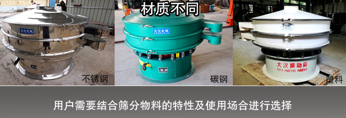 1000型旋振篩材質有碳鋼、不銹鋼、塑料等3種,不同材質之間會存在原材料采購費用的不同,所以不同材質的1000型旋振篩價格自然也會有所不同。用戶需要結合篩分物料的特性及使用場合進行選擇。
