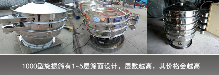 1000型旋振篩篩面有1~5層,層數越高,相應的旋振篩價格也是不一樣的。因為層數越高,在生產旋振篩的耗材上也會增加,所以導致層數越高的旋振篩其價格會越高。但是旋振篩層數建議使用3層,不宜設置過多。