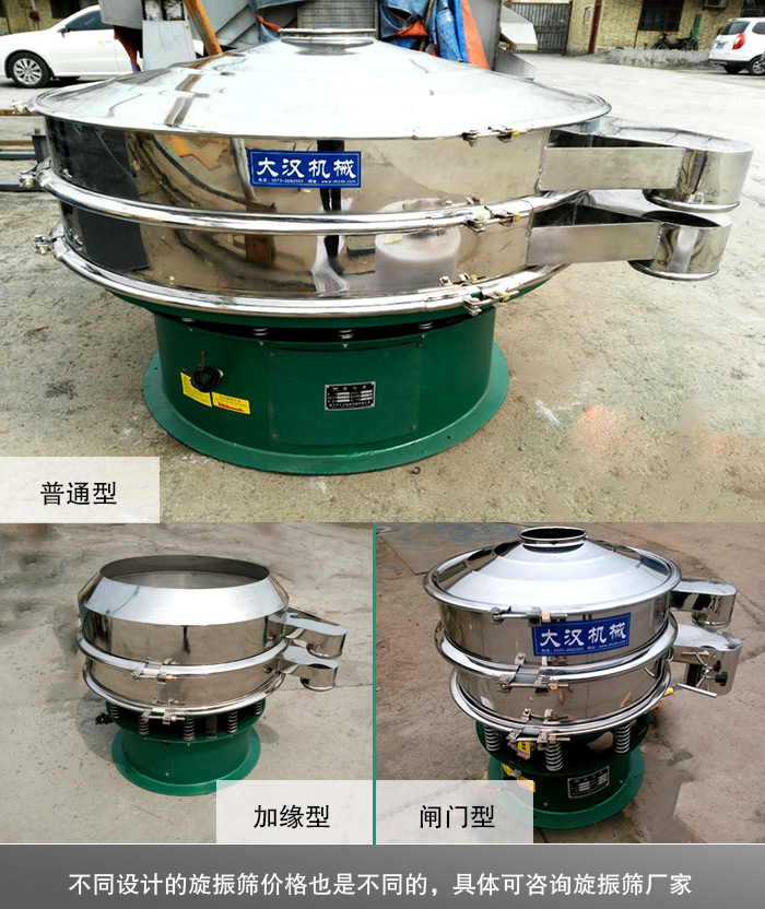 新鄉大漢1000型旋振篩可以針對不同行業的特殊需求進行獨特設計,例如直泄式、加緣式、閘門式等不同類型,出這3種設計外,還可以根據用戶實際需要提供定制服務,所以不同設計的旋振篩價格也是不同的,具體可咨詢大漢廠家。