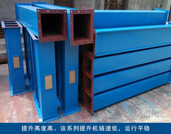 5、提升高度高。該系列提升機鏈速低,運行平穩,且采用用板鏈式高強度耐磨合金鋼鏈條,因此可達較高的提升高度(高度40M);
