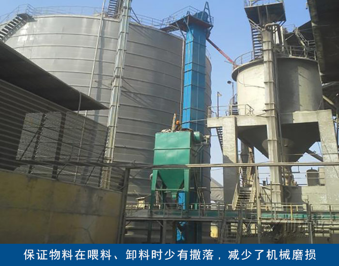 1、驅動功率小,采用流入式喂料、誘導式卸料、大容量的料斗密集型布置.在物料提升時幾乎無回料和挖料現象,因此無效功率少;