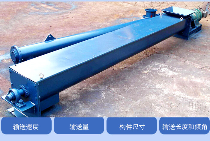 輸送線路長度和傾角大小直接影響輸送機的總阻力和所需要的功率。現在輸送機有許多的類型,有直接平行給料的,有的是帶有一定的傾斜角,所以在螺旋給料機選型時要說明這些使用條件。