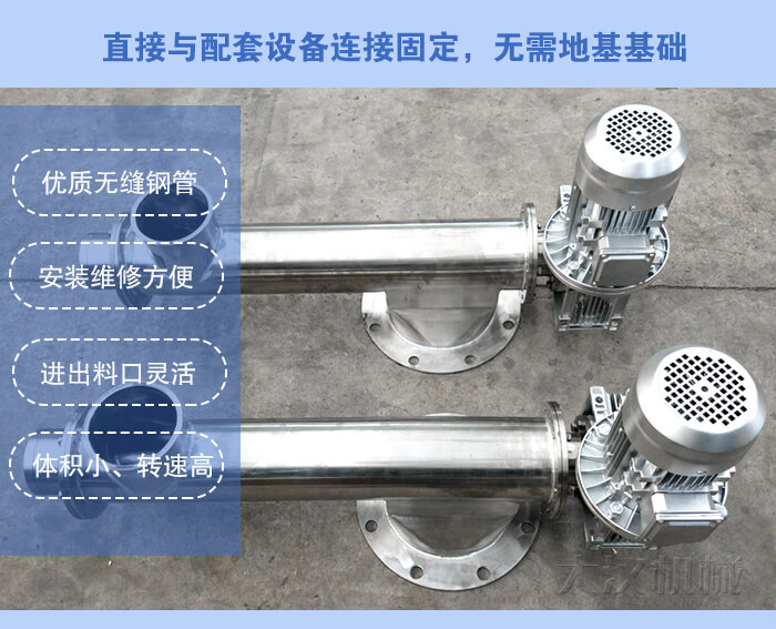 1、螺旋輸送機外殼采用優質無縫鋼管,通過法蘭將各段連接為整體,可直接與配套設備連接固定,無需地基基礎;