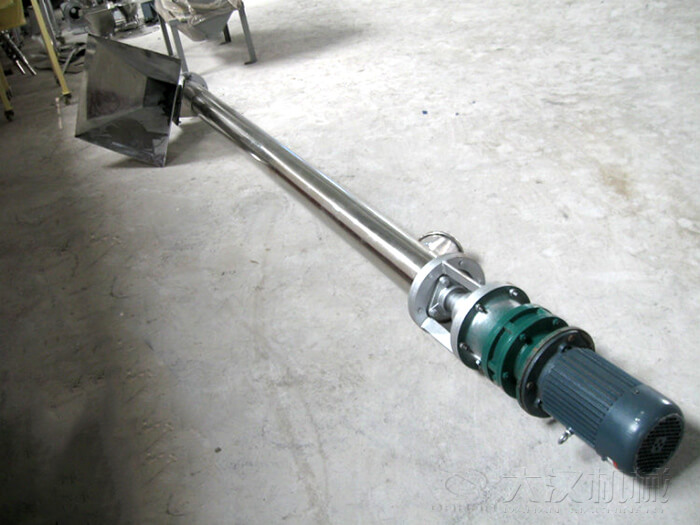 在U型螺旋輸送機運行過程中, 物料從進料口加入,當轉軸轉動時,螺旋葉片將物料推移而進行輸送,但由于物料本身的重力和料槽對物料的摩擦力的緣故,才不與螺旋葉片一起旋轉,在由螺旋軸的拖動下,物料往出料口方向移動,將物料輸送到料倉或料池中。